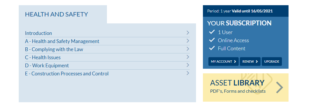 CIP Knowledge provides continually updated H&S (Health and Safety) and environmental manuals online. It is produced by professionals working hands-on in the construction industry. the manual comprises of over 50 sections covering all aspects of the Health & Safety and Environmental function as it relates to the industry both for management and operational activities. The online manual addresses the challenge of complicated legislation written in legal language by publishing the official text as written and alongside, providing straightforward guidance by explaining and demystifying that text in a simple, understandable form.